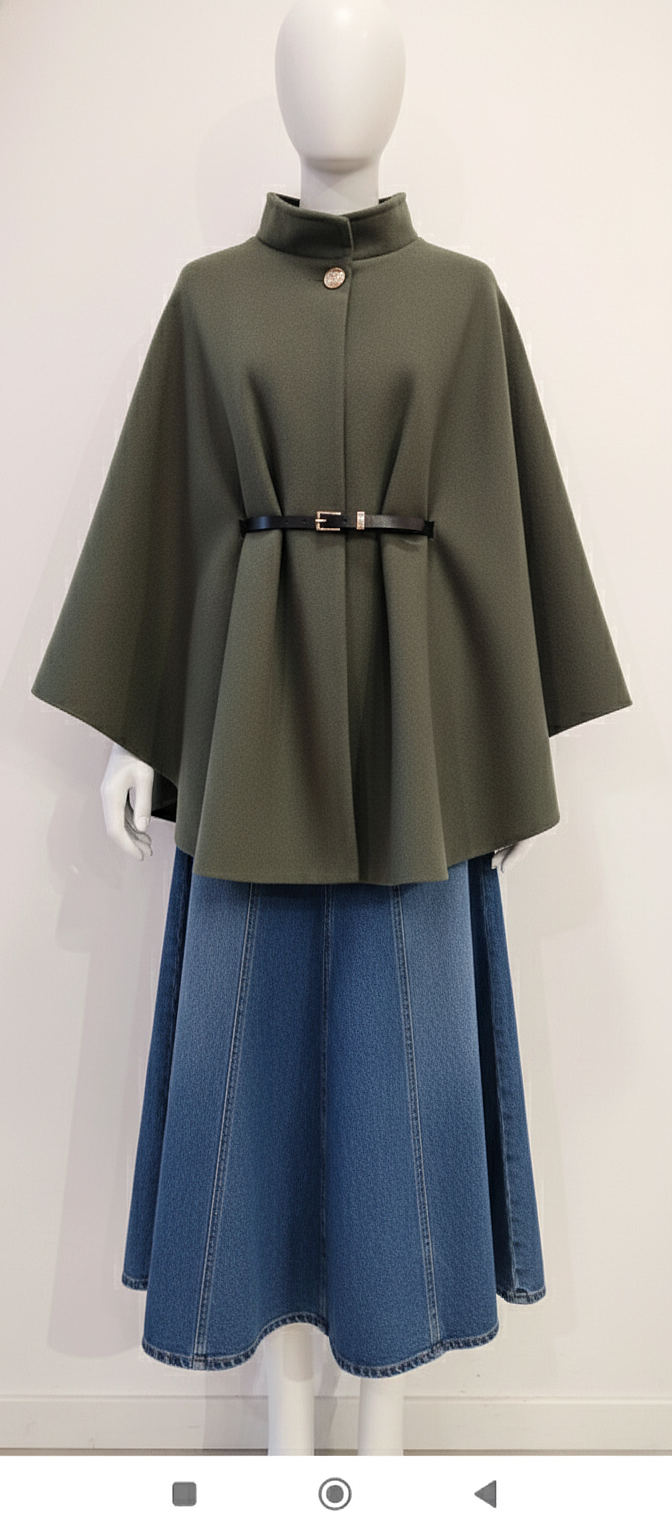Cape Classique Kaki avec Ceinture, Fabrication Italienne 🇮🇹