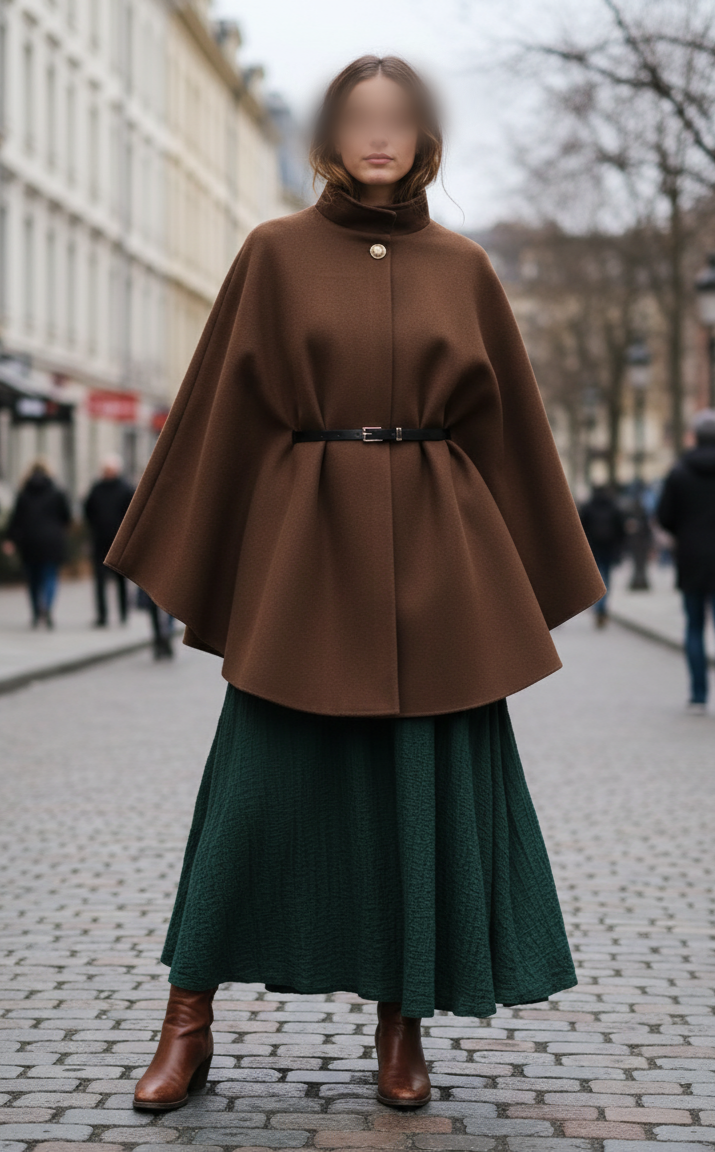 🧡 Idéale sur une robe, un pantalon large ou une tenue plus habillée, cette cape deviendra vite votre alliée élégance pour la mi-saison et l’hiver.