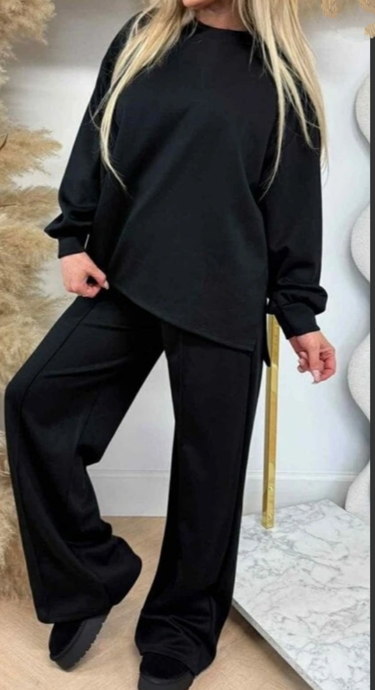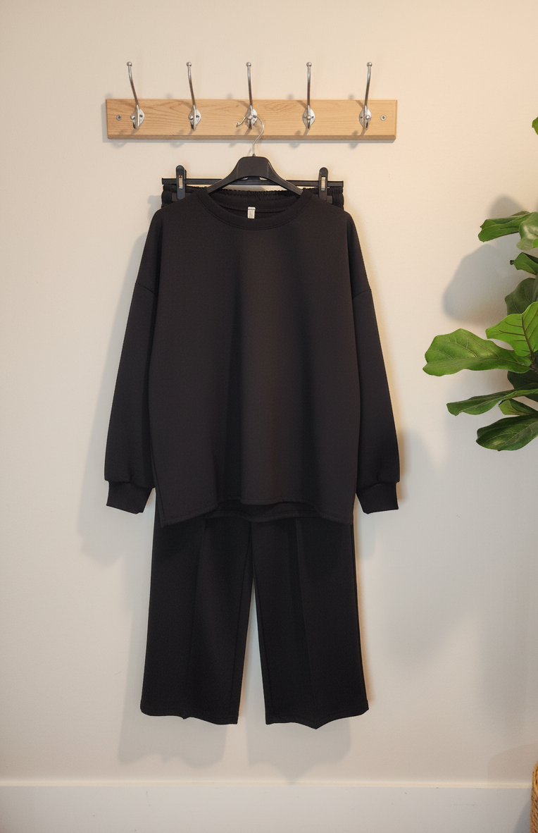 La couleur ? Un noir profond et intense, une teinte classique et indémodable qui confère instantanément une allure chic et mystérieuse. C’est l’ensemble idéal pour se sentir parfaitement à l’aise tout en restant impeccable, que ce soit pour une soirée cocooning à la maison ou pour une sortie élégante. Enfilez 👐 cette tenue et combinez-la avec vos accessoires favoris pour un style affirmé. C’est l’assurance d’un look casual chic d’une qualité irréprochable, prêt-à-porter avec distinction.